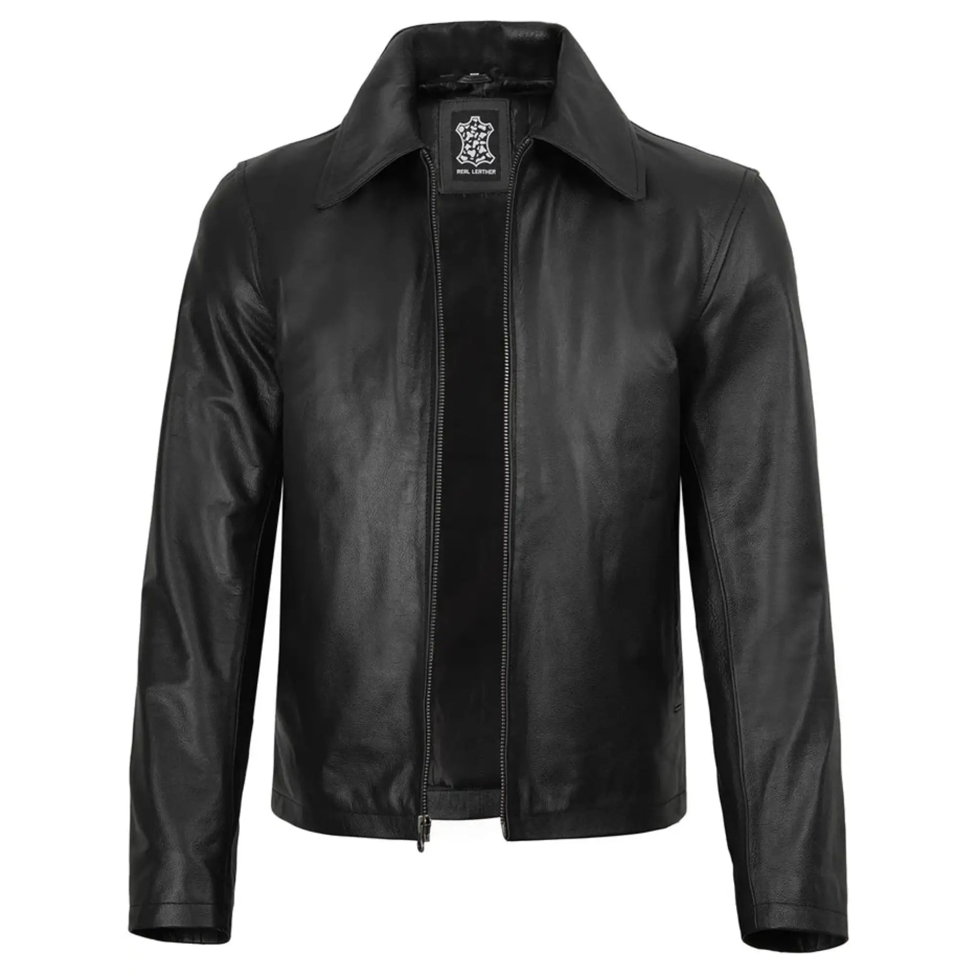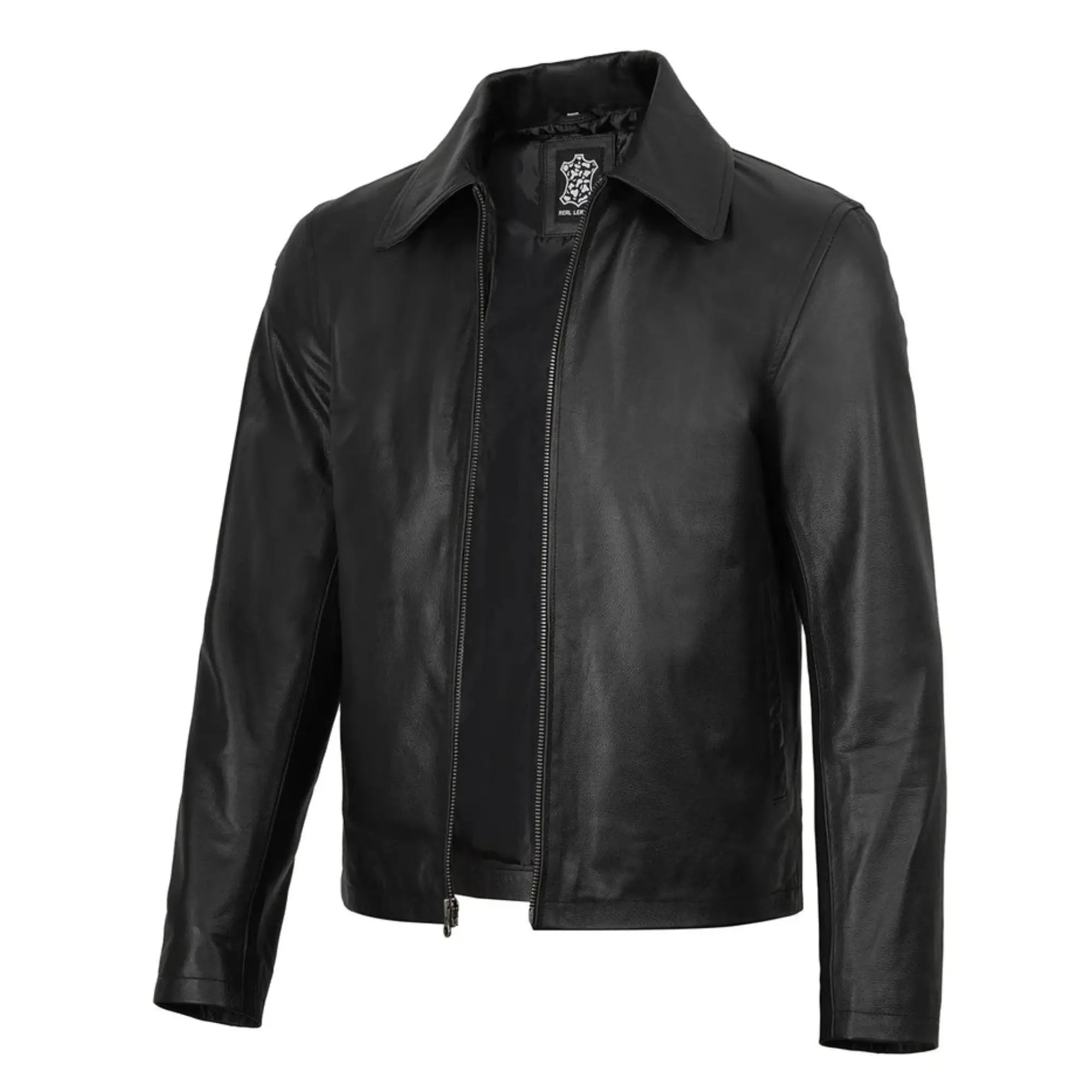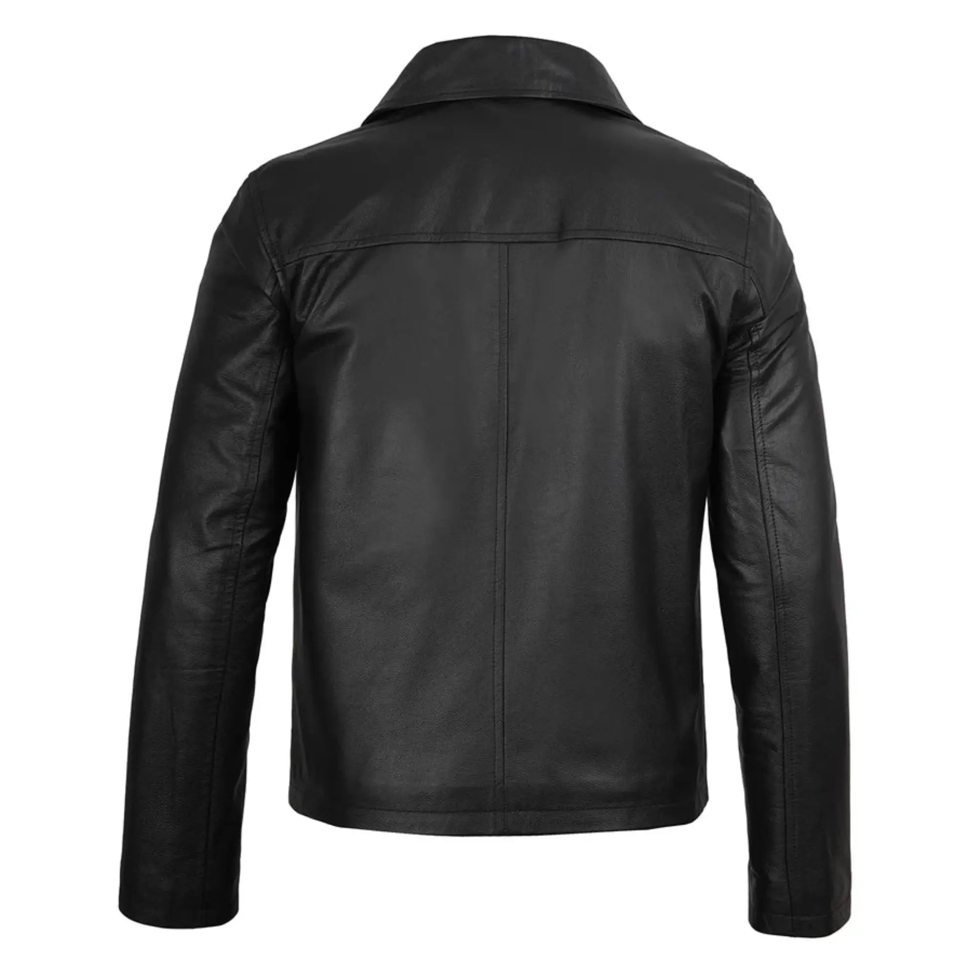 Men's Black Shirt Collar Sheepskin Leather Jacket