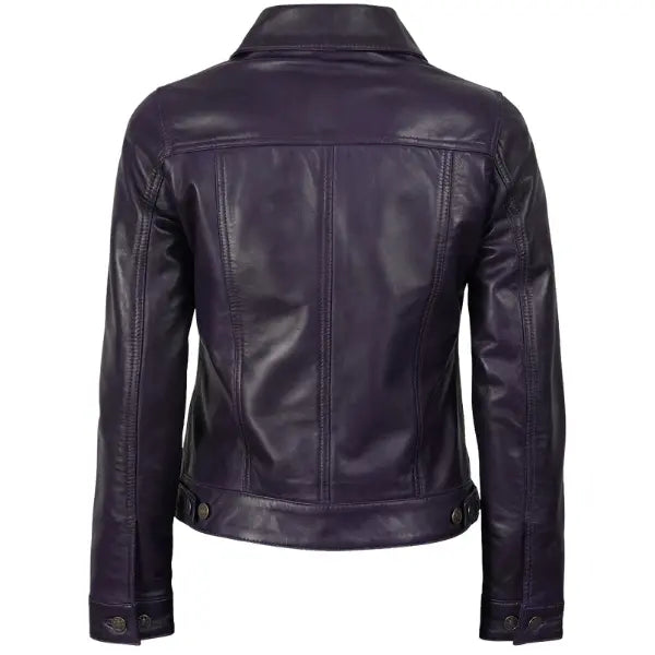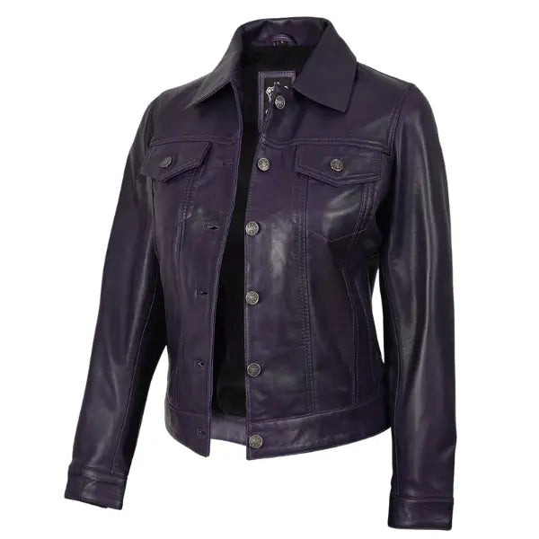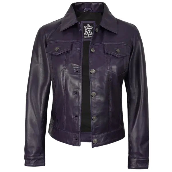 Women Purple Leather Trucker Jacket