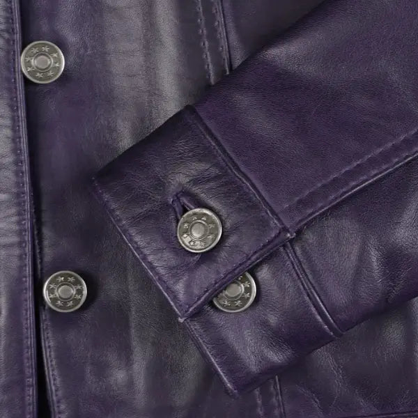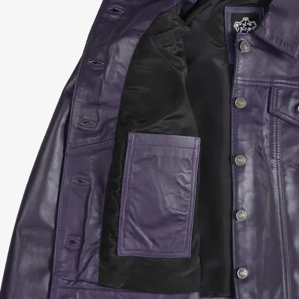 - Firstly, this jacket is crafted from 100% Sheepskin leather. Moreover, the purple color adds a bold and stylish look that makes you stand out.