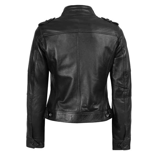 Women Tavares Black Motorcycle Sheepskin Leather Jacket