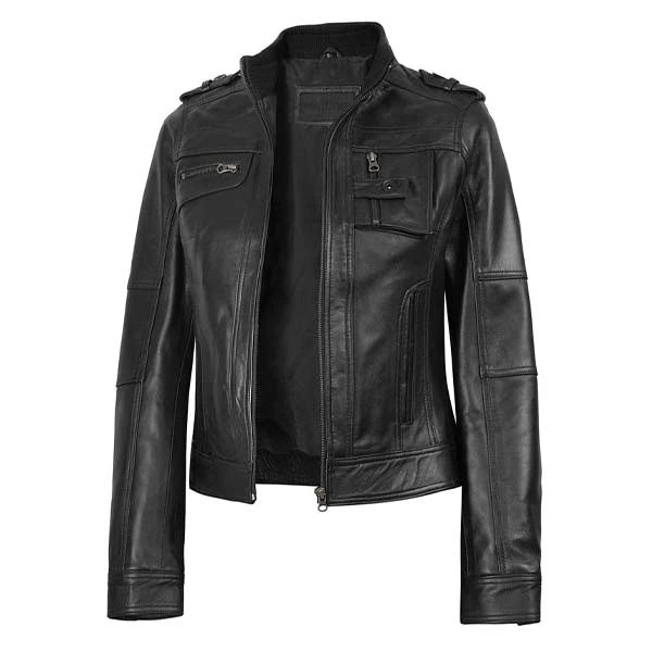 Women Tavares Black Motorcycle Leather Jacket